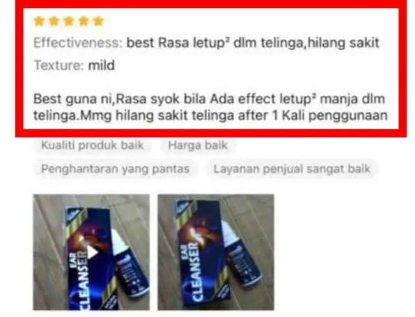 “Rasa letup² dalam telinga… 1 kali guna terus hilang sakit.”