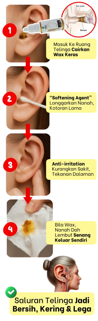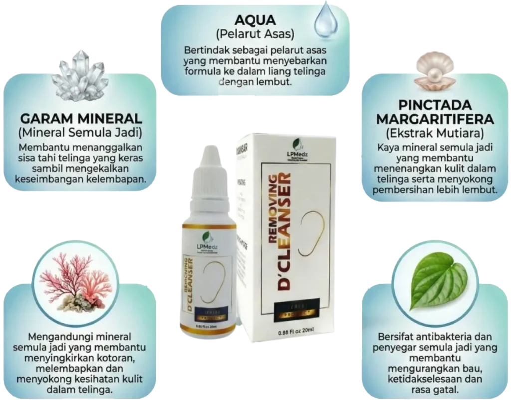 Produk pembersih telinga yang diformulasikan untuk membantu: