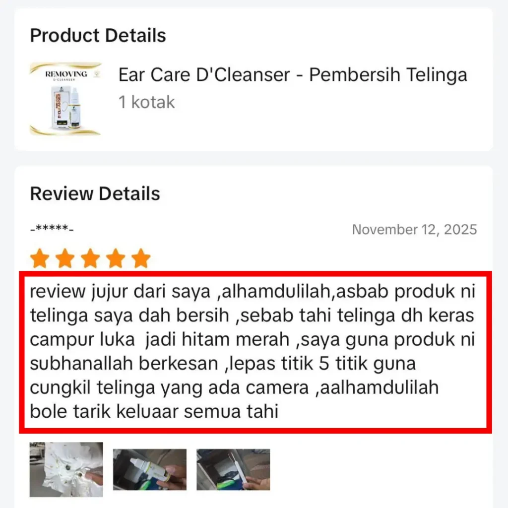 "Masalah Telinga Hampir 1 Tahun, Alhamdulillah Lepas Guna D'Cleanser, Jadi CLEAR TELINGA"