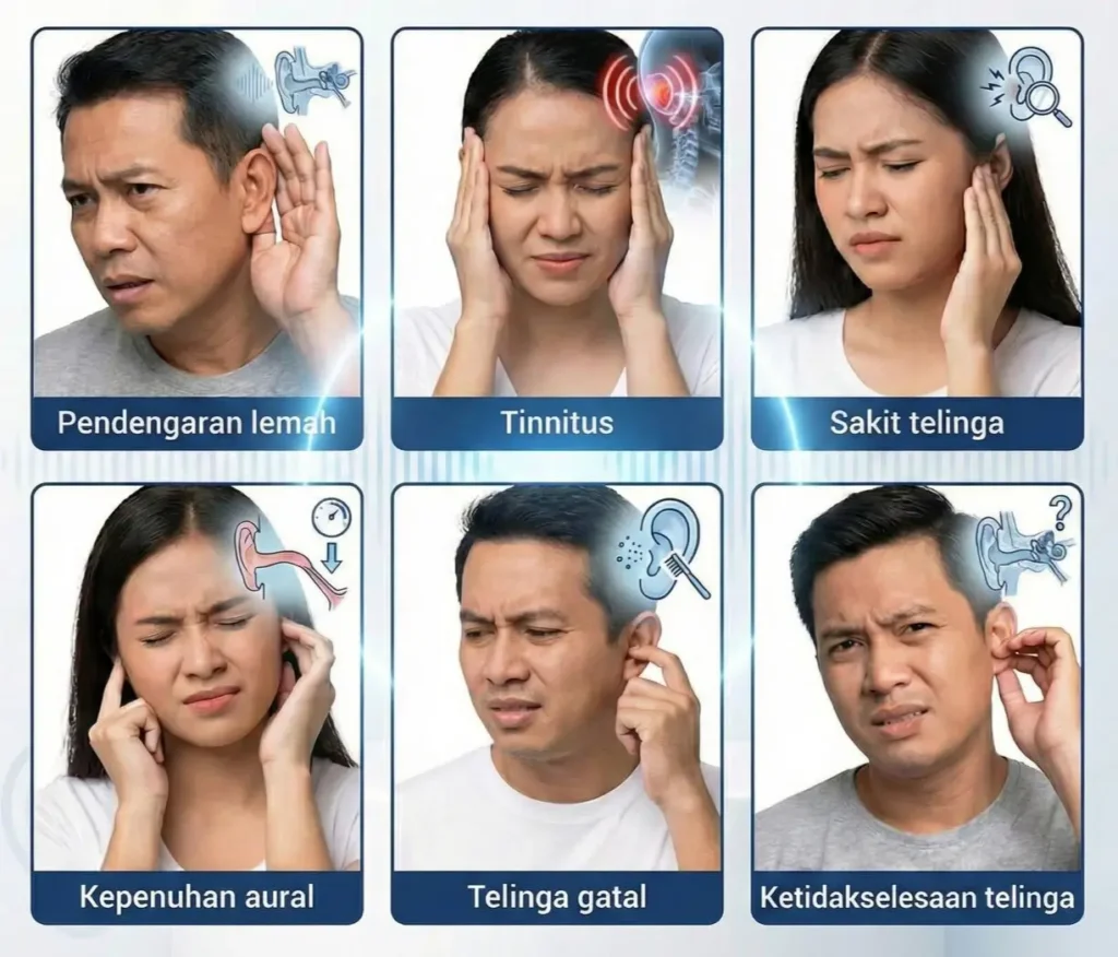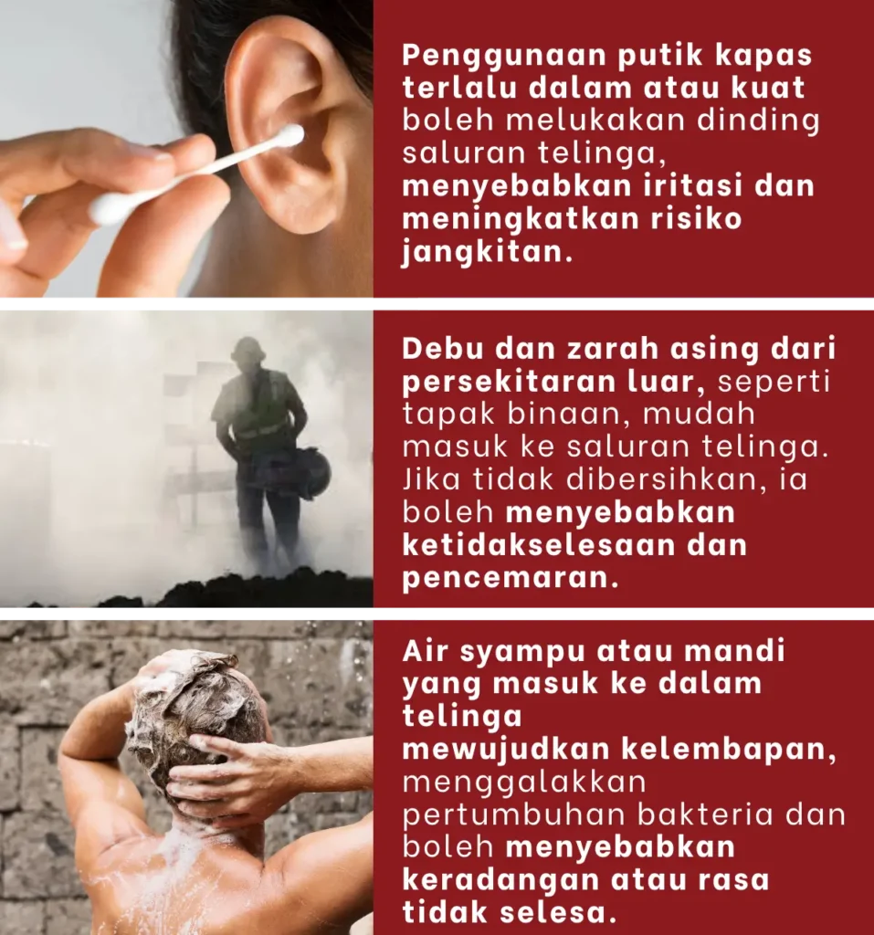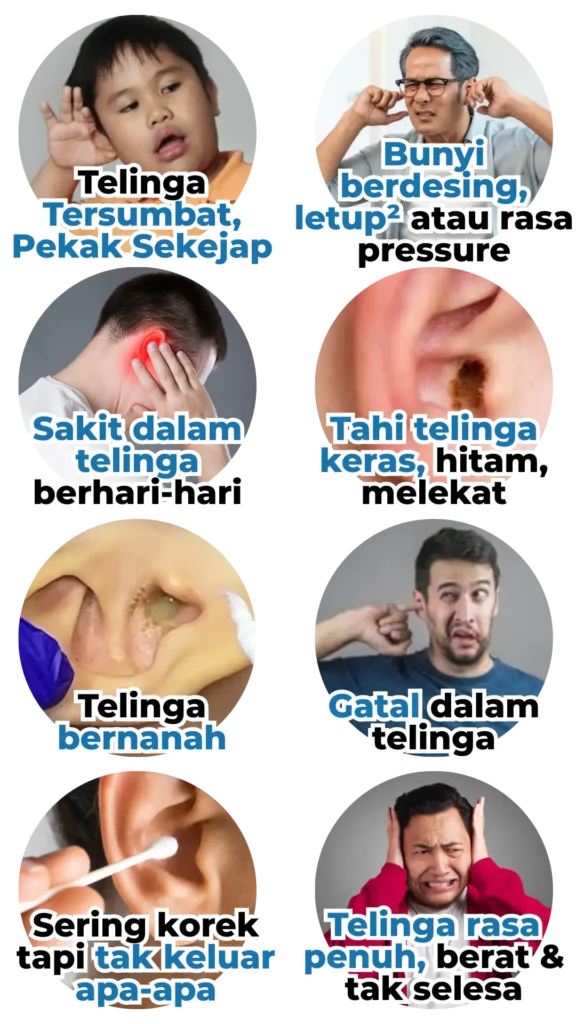 👉 Semua ini tanda saluran telinga tersumbat + keradangan dalaman.