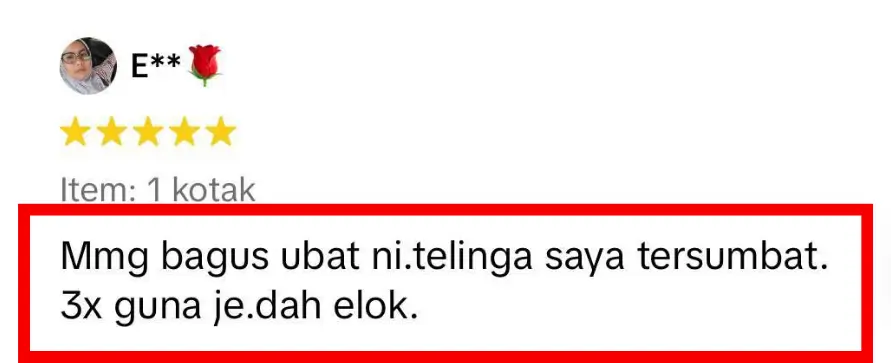 “3x guna je dah elok. Telinga saya tersumbat lama.”